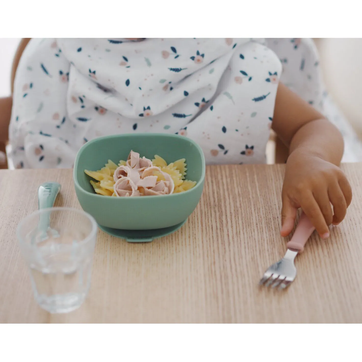 Équipé d’une ventouse intégrée, ce bol adhère parfaitement à la table ou à la tablette de la chaise haute, évitant ainsi les renversements et assurant un repas paisible et propre. Sa conception ergonomique (bords hauts et angles arrondis) facilite la prise des aliments par bébé, l’aidant à apprendre à manger proprement et comme un grand.
