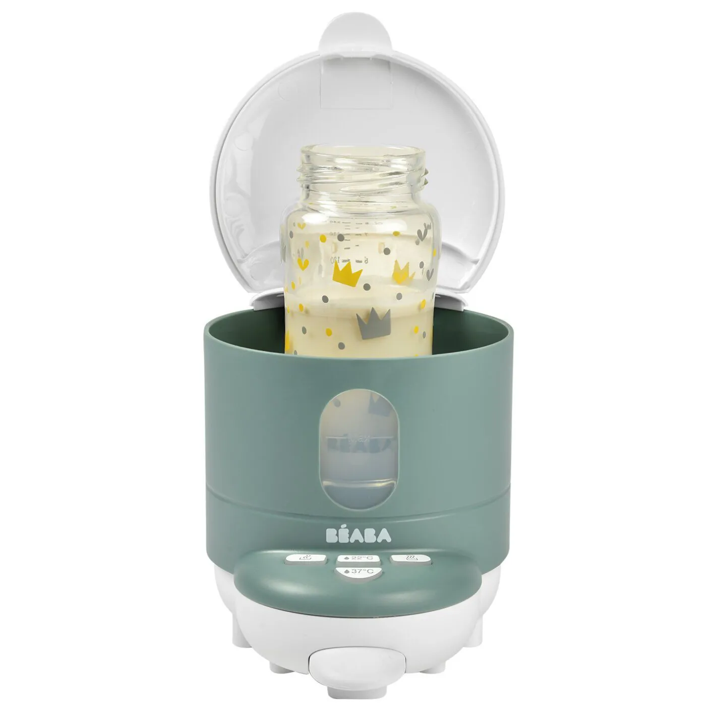 Son fonctionnement simple et intuitif permet de préparer un biberon d’une seule main. En effet, l’eau chauffée est distribuée directement dans le biberon par une simple pression du doigt, rendant l’utilisation à la fois pratique et facile. Le contrôle direct de la température de l’eau avec deux choix possibles, 22 et 37°C, garantit une préparation sure, précise et homogène, adaptée aux besoins de bébé. Il est évolutif avec sa fonction bain marie qui permet, en plus de réchauffer les biberons, les petits pots.