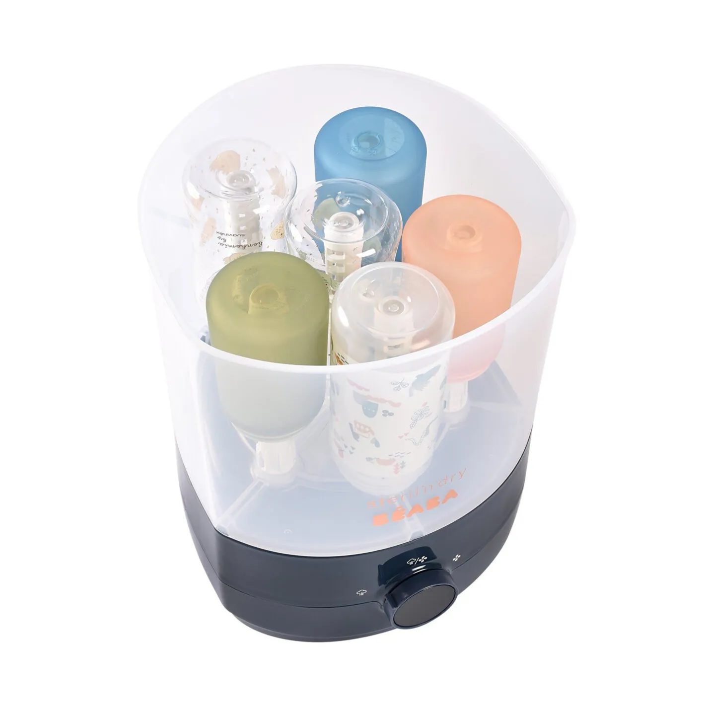 Multifonction, il propose trois modes au choix : stérilisation et séchage en 38 minutes, stérilisation seule en 8 minutes, ou séchage seul en 30 minutes. Doté d’un mode automatique, il permet un cycle complet de stérilisation et de séchage en seulement 38 minutes. Performant, il diffuse la vapeur et l’air chaud au cœur des biberons pour une efficacité optimale.